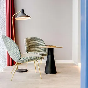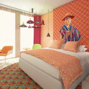 Some of the soundproofed rooms feature Wi-Fi as well as coffee machines. They are furnished with bold decor.